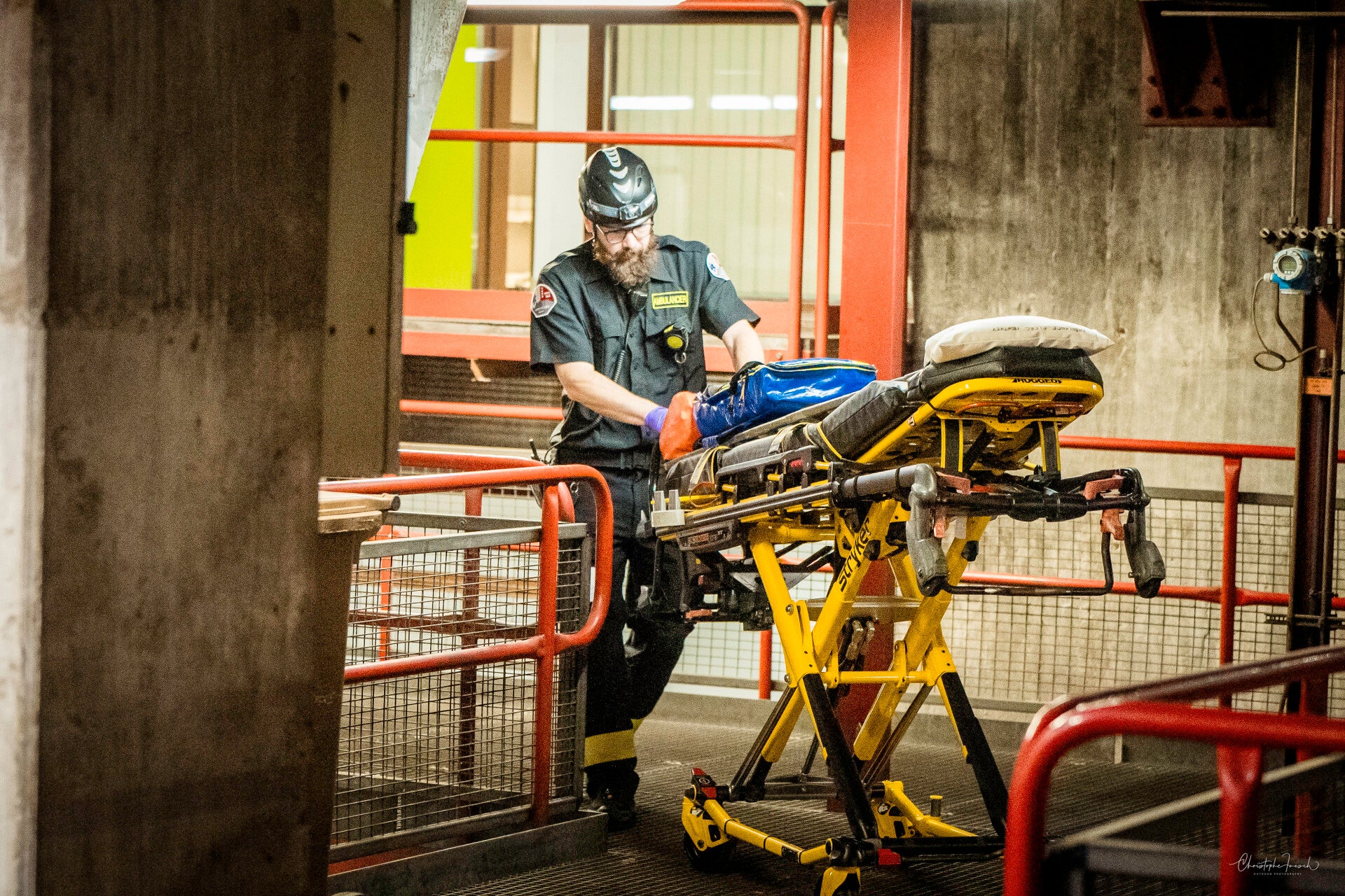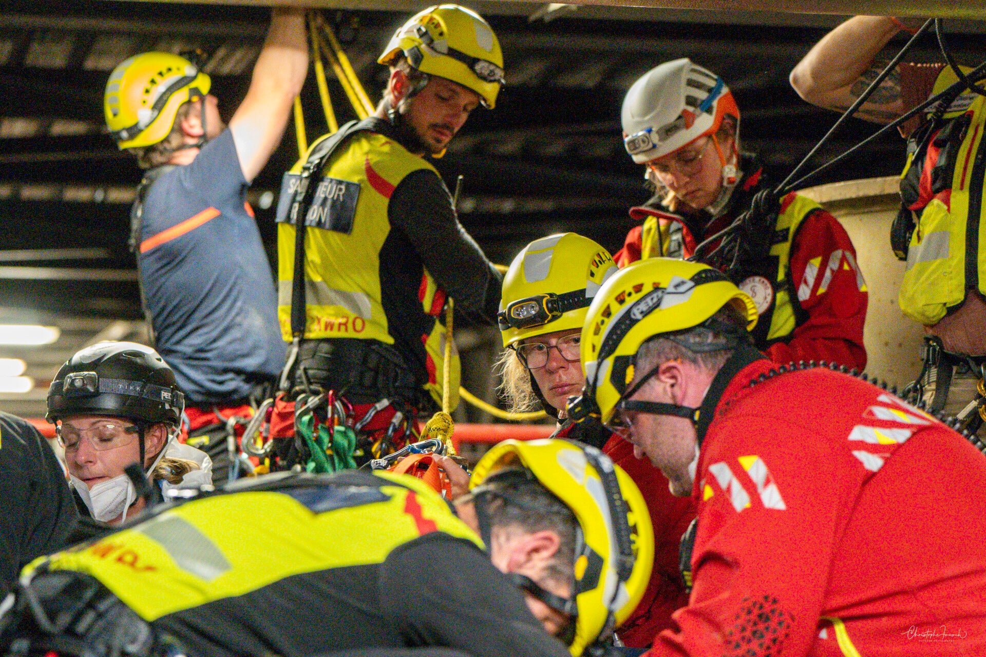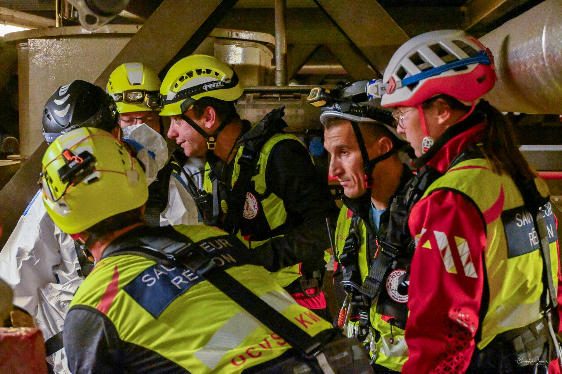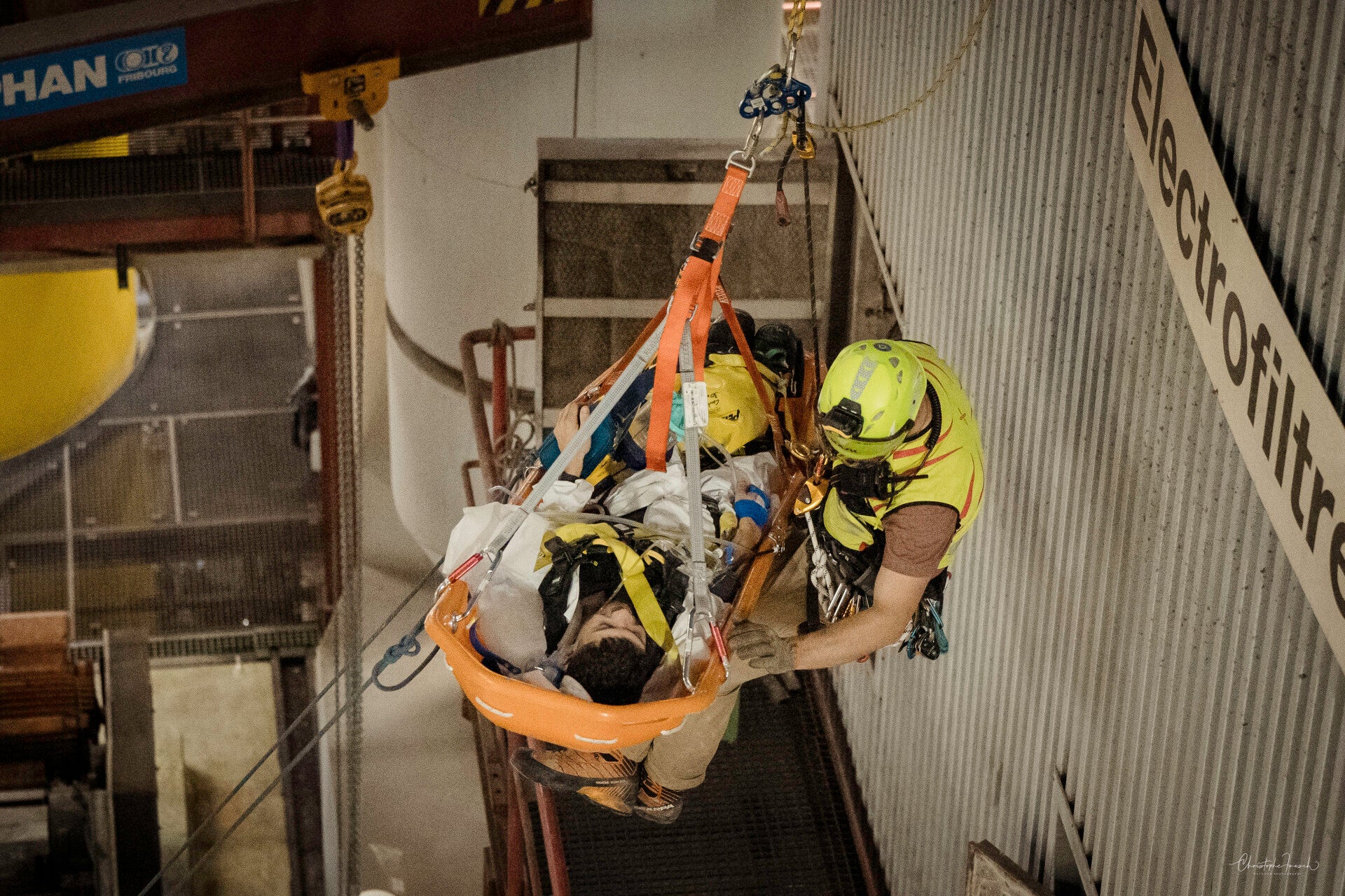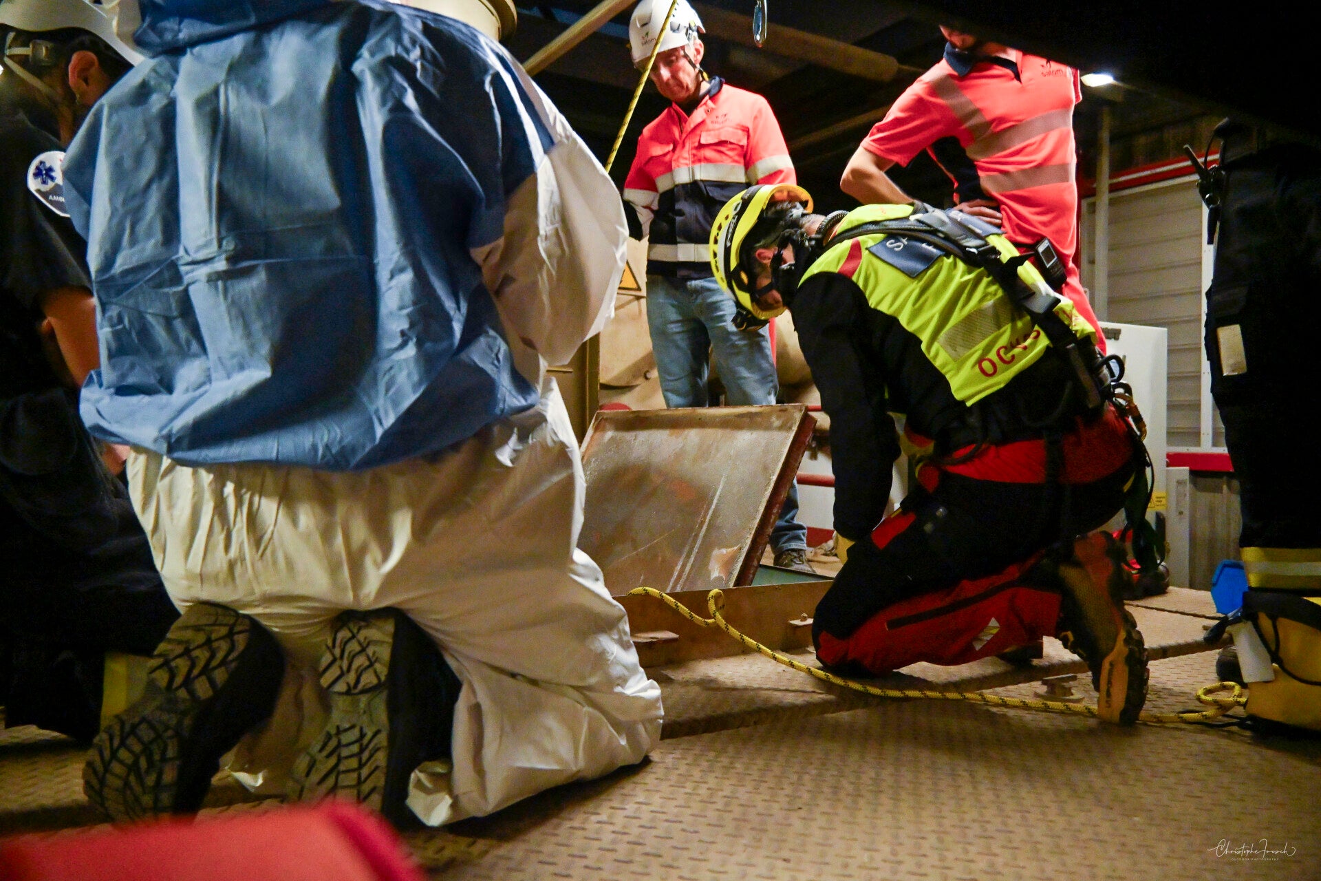 Le GRIMP en exercice d'intervention en milieu industriel.